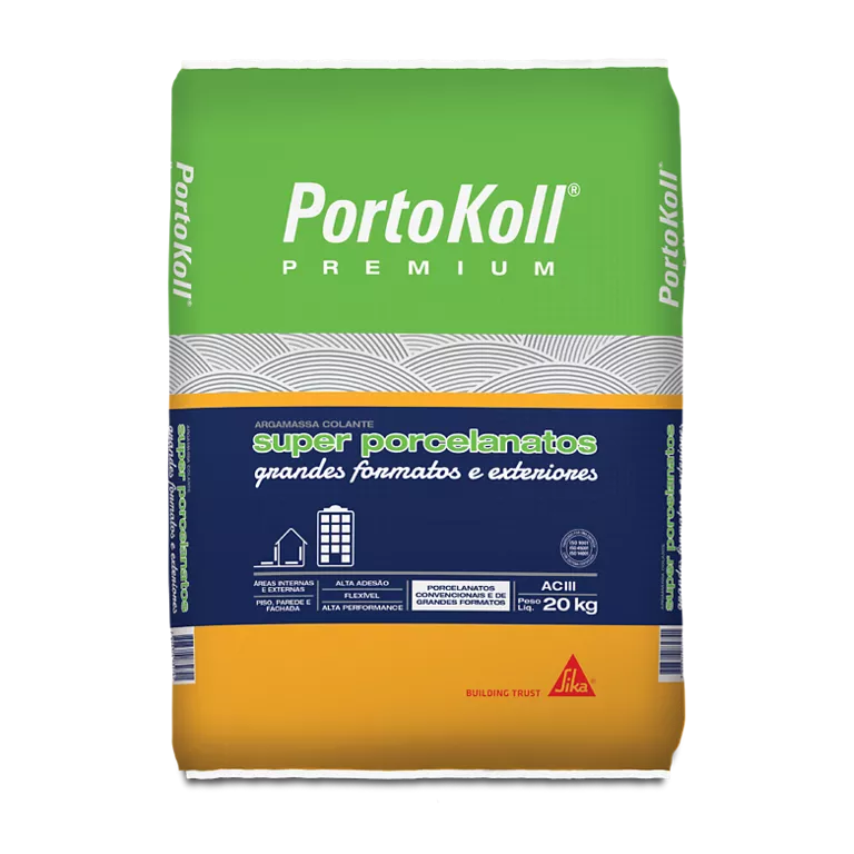A PortoKoll PREMIUM Superporcelanatos é uma argamassa colante do tipo ACIII desenvolvida para o assentamento de porcelanatos e revestimentos cerâmicos de grandes formatos. Desde a aplicação inicial, o produto entrega alto desempenho, pois combina tecnologia avançada, elevada aderência e flexibilidade superior. Assim, o profissional executa a obra com mais segurança, precisão e durabilidade, mesmo em projetos técnicos e exigentes.